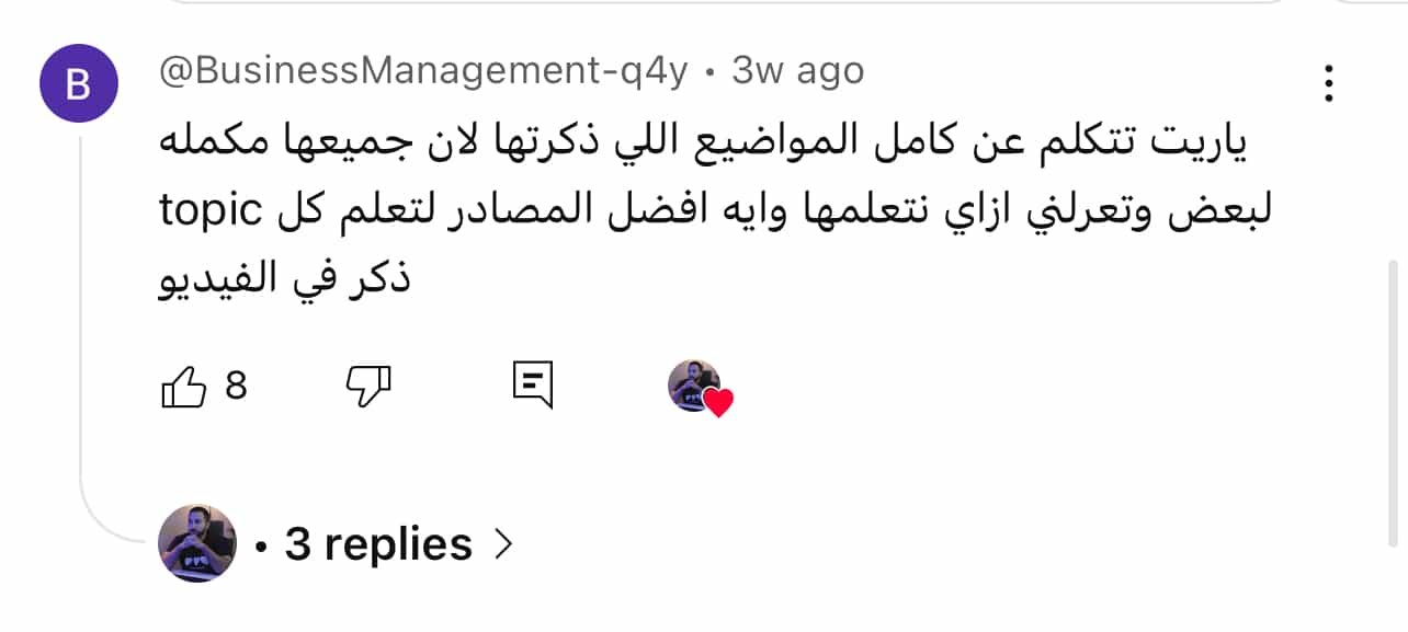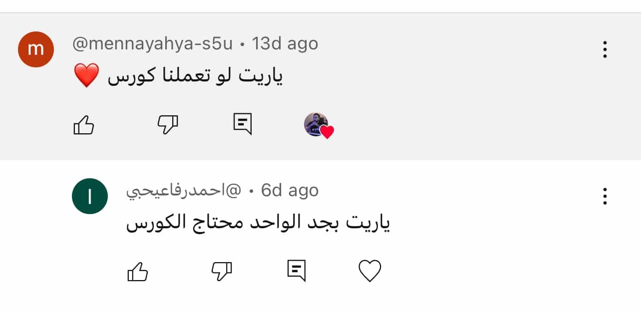 رد الفعل على الفيديوهات دي أكد لي إن المشكلة عند ناس كتير جدًا. التعليقات والأسئلة كلها كانت بتدور حوالين نقطة واحدة: "إحنا محتاجين محتوى عملي زي ده، بس يكون منظم ومتكامل نقدر نمشي عليه.